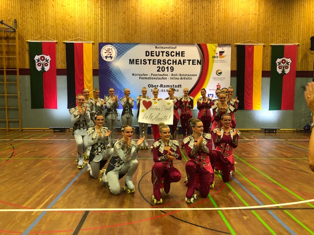 Dream Team Veröffentlicht 07.08.2019 am 640 × 480 in Deutsche Meisterschaften Kür 2019 in Ober-Ramstadt Das Dream Team bedankt sich mit einem Herz bei ihrer Trainerin Annette Ziegenhagen-Gielnik